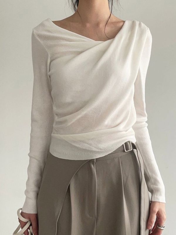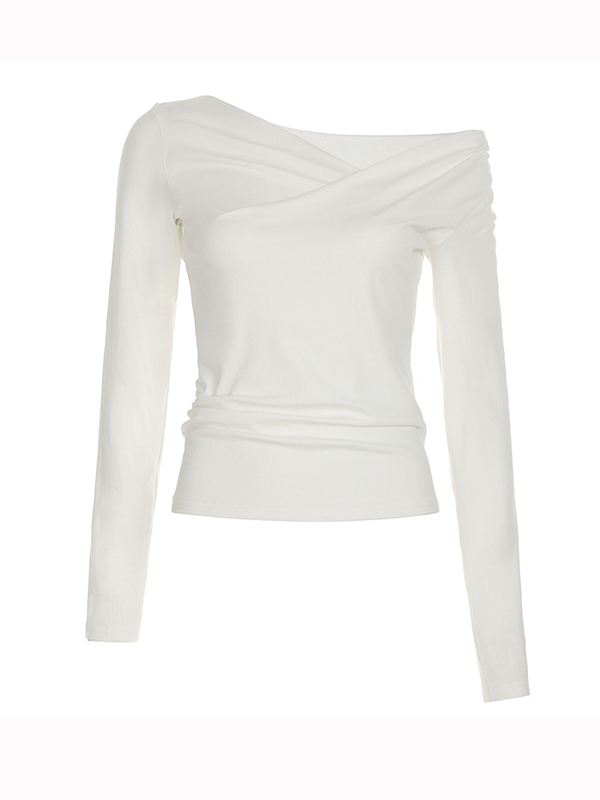 Camiseta de manga larga irregular con hombros descubiertos