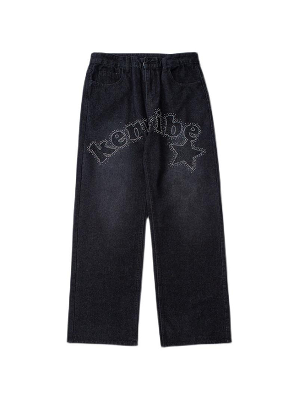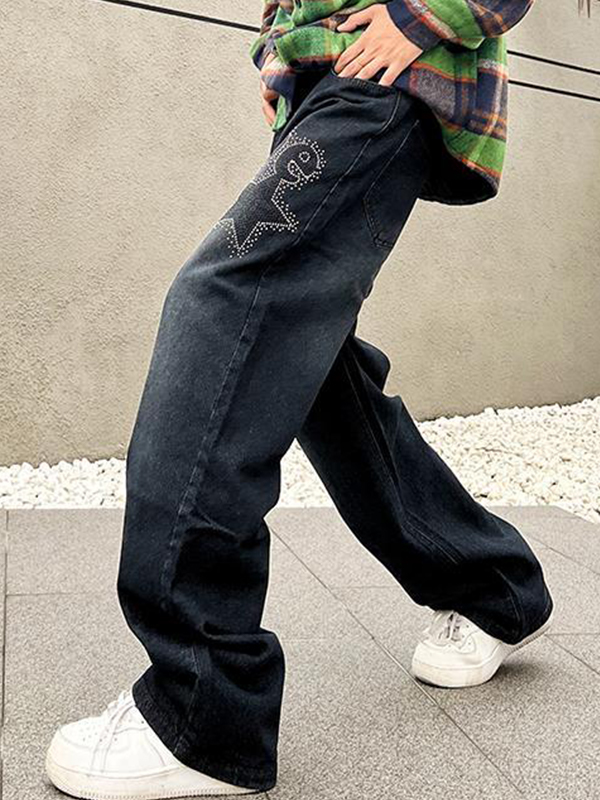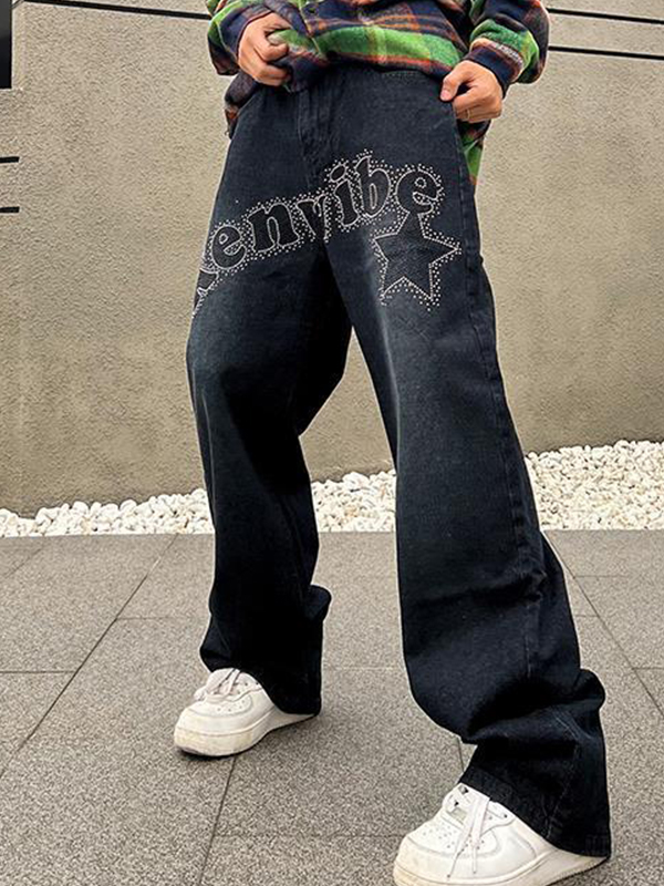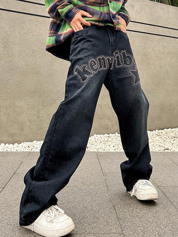 Vaqueros holgados con estampado de diamantes y monograma para hombre