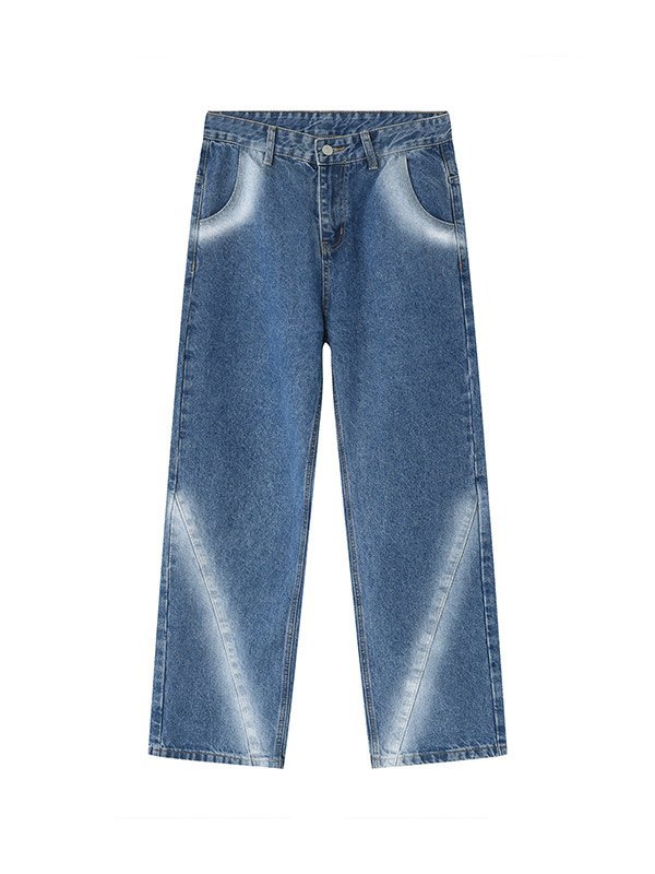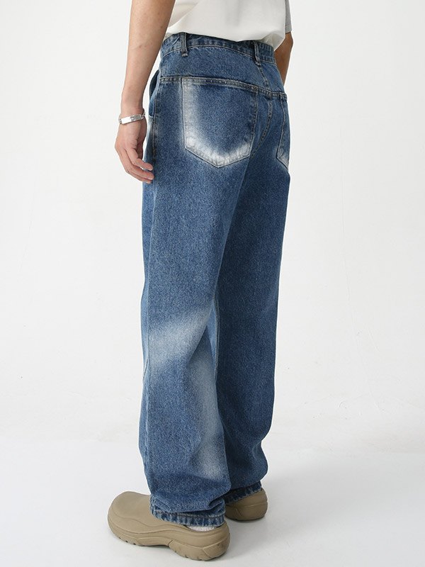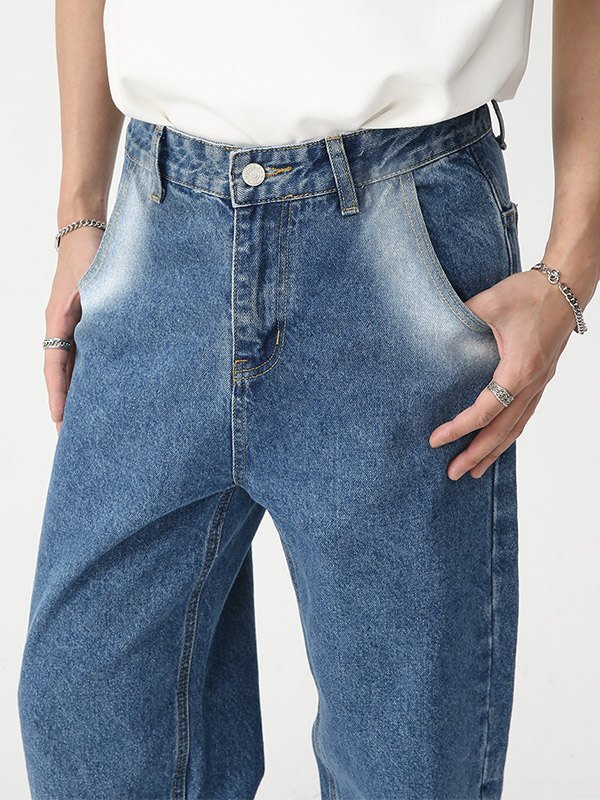 Descripción: Estos jeans de mezclilla clásicos y retro para hombre son básicos y versátiles para estilo. Tienen efectos de teñido anudado en aerosol en la pierna, con múltiples trabillas para cinturón, bolsillos de jeans funcionales y un diseño de cremallera con botón de metal.