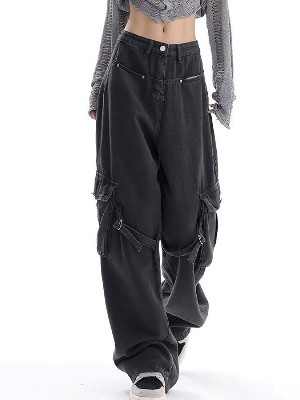 Pantalones vaqueros cargo holgados de cintura alta