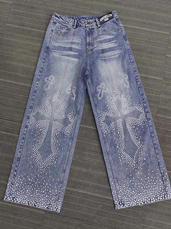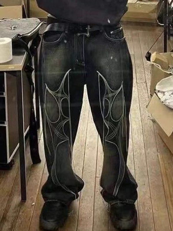 Vaqueros holgados con estampado de flecos para hombre