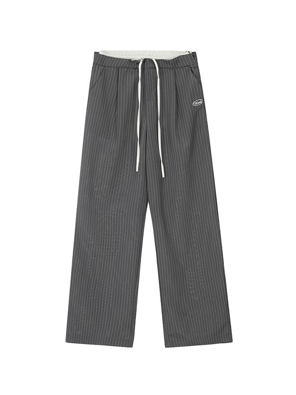 Pantalones anchos con cintura doble y diseño de patchwork y rayas en la cabeza