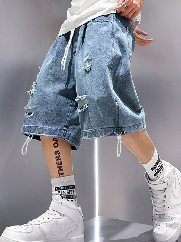 Pantalones cortos sueltos rectos con bordado desgastado de mezclilla para hombre