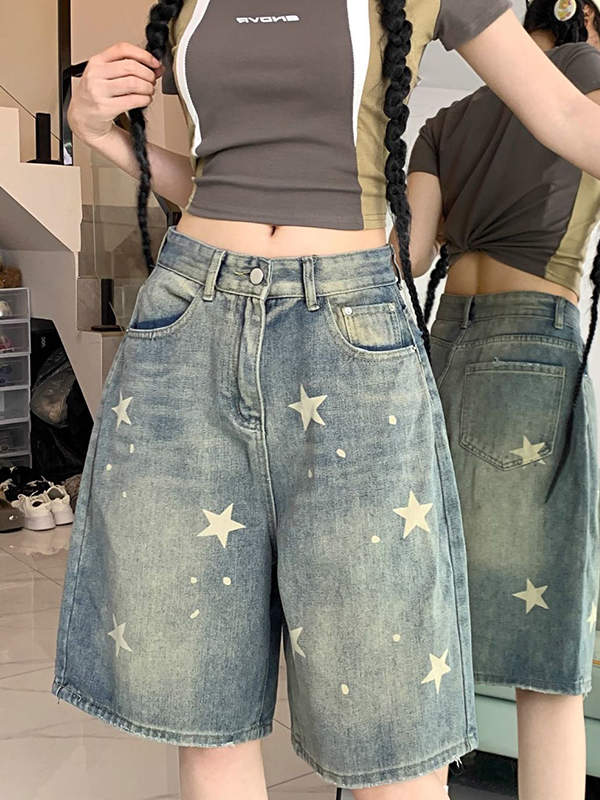 Shorts vaqueros con bolsillos estilo urbano vintage