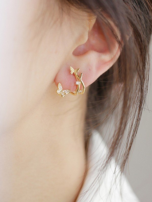 1 par de puños de oreja de mariposa de diamantes de imitación