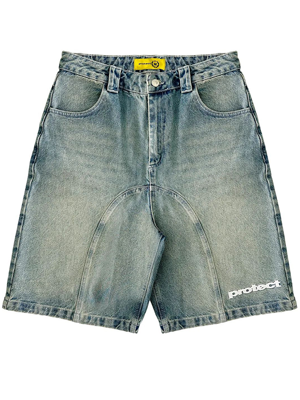 Pantalones cortos sueltos rectos con bordado desgastado de mezclilla para hombre