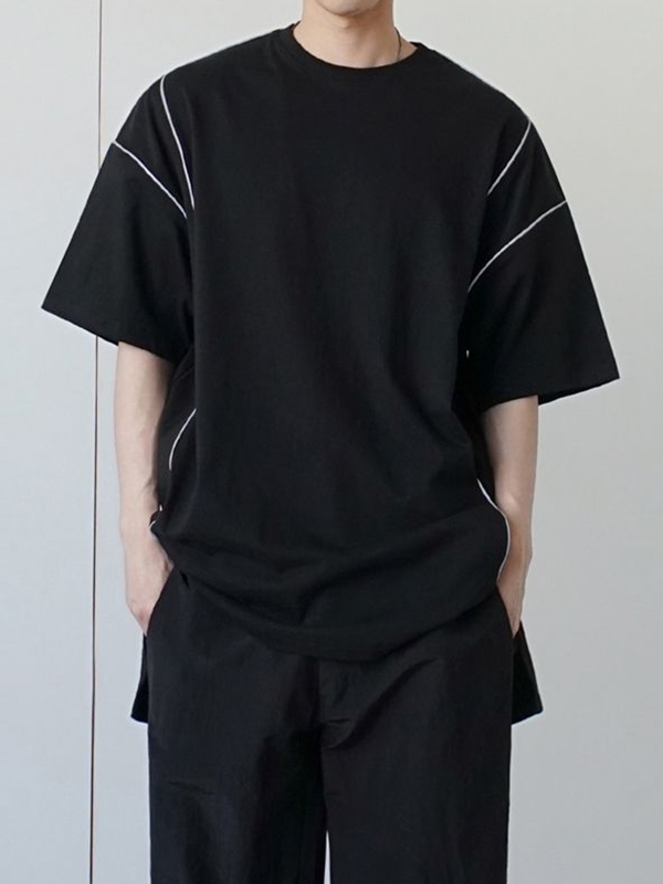 Camiseta de manga corta con empalme de línea reflectante para hombre