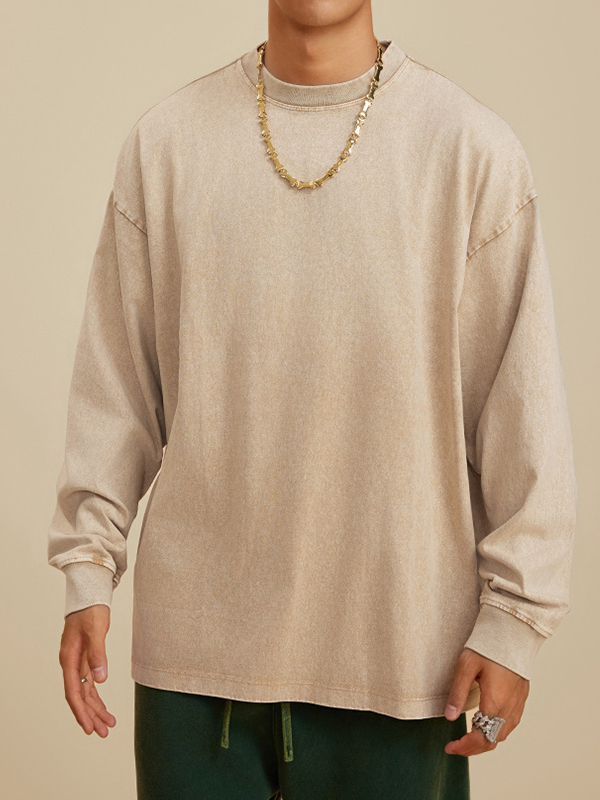 Camiseta de manga larga de color sólido lavada vintage para hombre