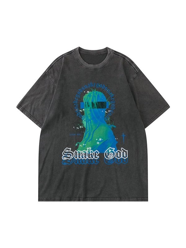 Camiseta de manga corta con gráfico de lavado vintage para hombre