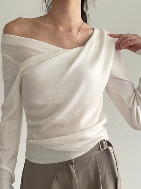 Camiseta de manga larga irregular con hombros descubiertos