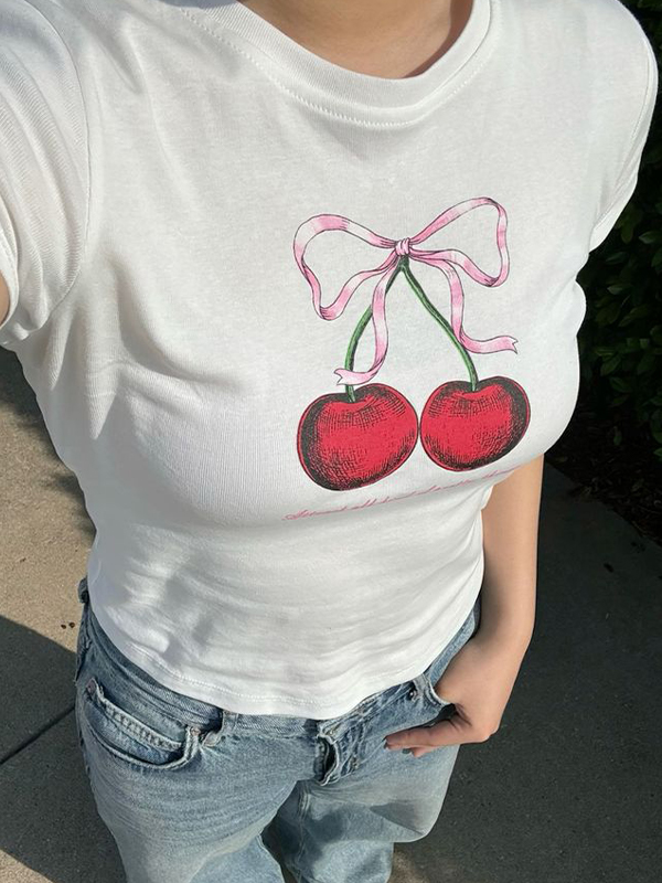 Camiseta de manga corta con estampado de labios de cereza