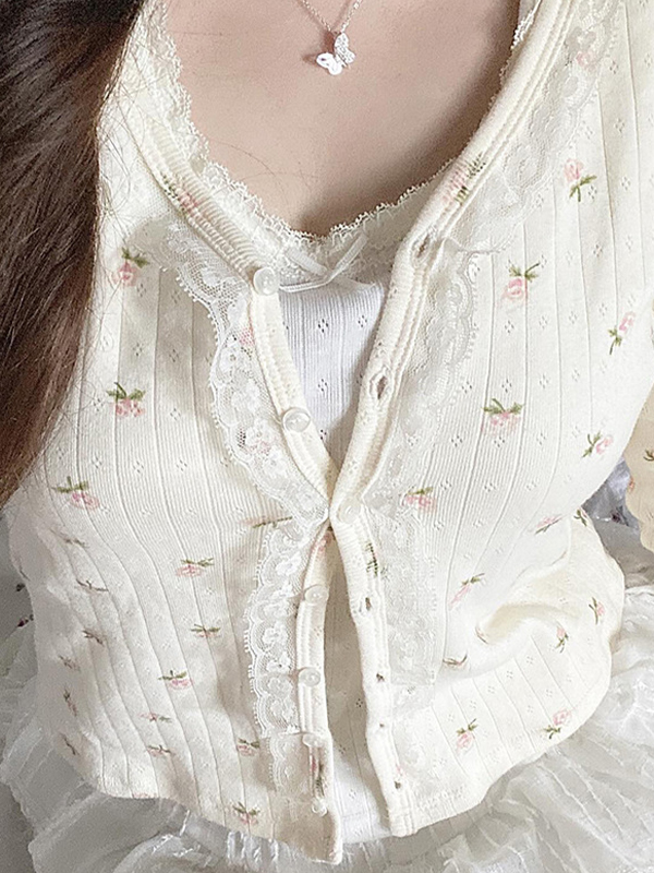 Prendas de punto de manga larga con patchwork y encaje floral
