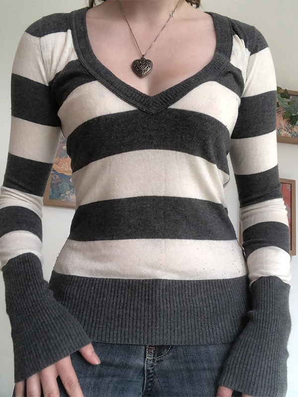Jerseys de manga larga a rayas con cuello en V
