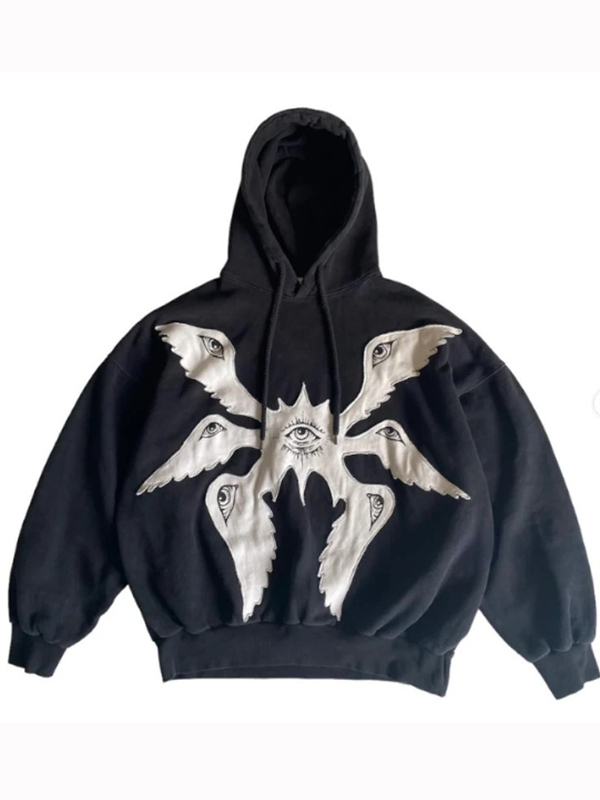 Sudadera con capucha extragrande con bordado Street Eyes para hombre