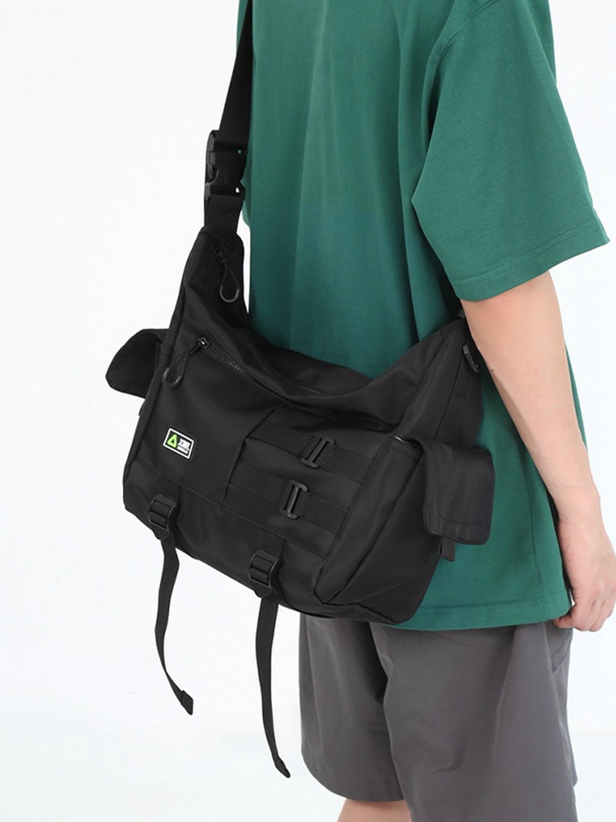 Bolso bandolera grande de nailon con correa con hebilla