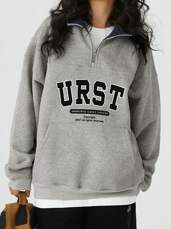 Sudadera con media cremallera y cuello de solapa con bordado de letras