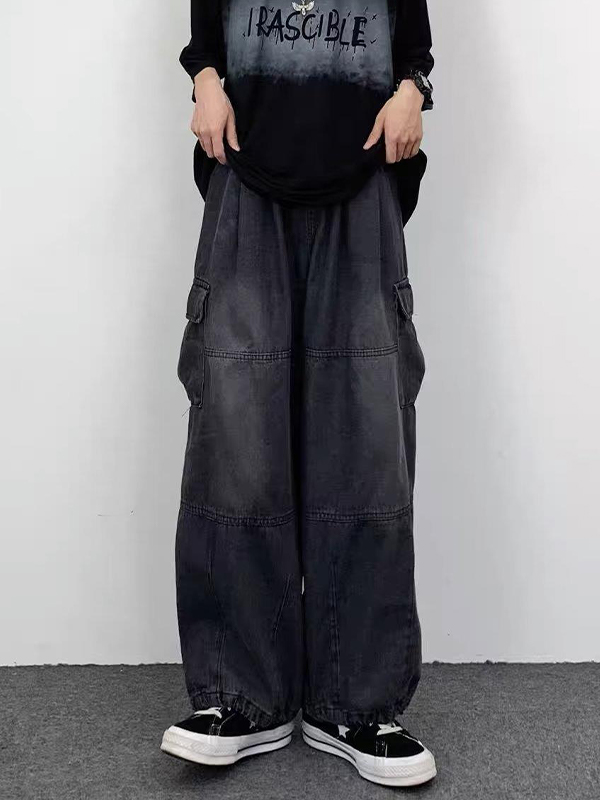 Jeans cargo sueltos de mezclilla con lavado vintage para hombre