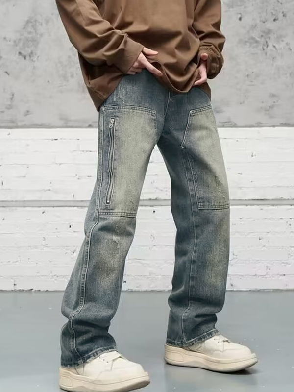 Jeans cargo desgastados con cremallera y bolsillo para hombre