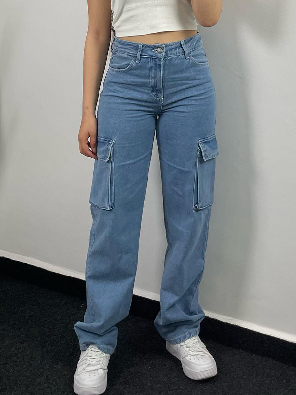 Vaqueros cargo holgados de color azul claro con múltiples bolsillos