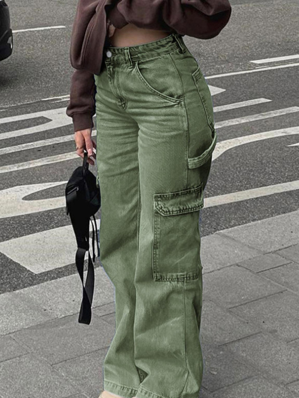 Pantalones vaqueros cargo holgados de cintura alta