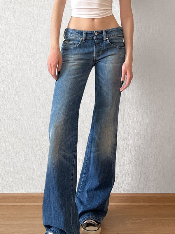 Vaqueros acampanados de tiro bajo y lavados
