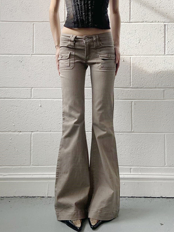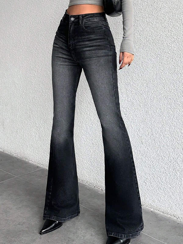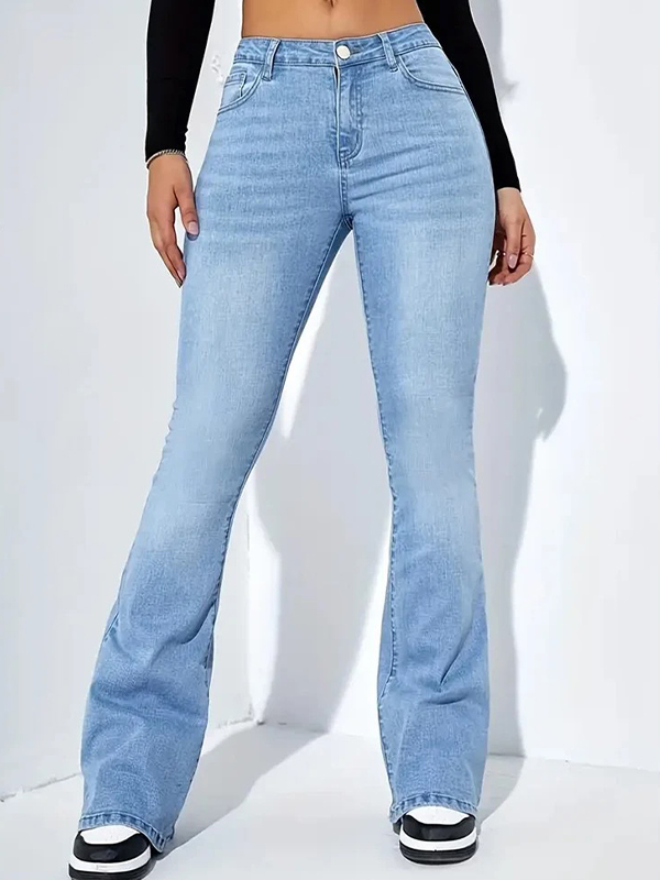 Jeans acampanados versátiles básicos de adelgazamiento de tiro bajo