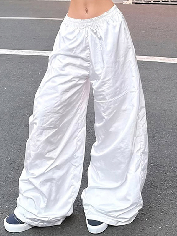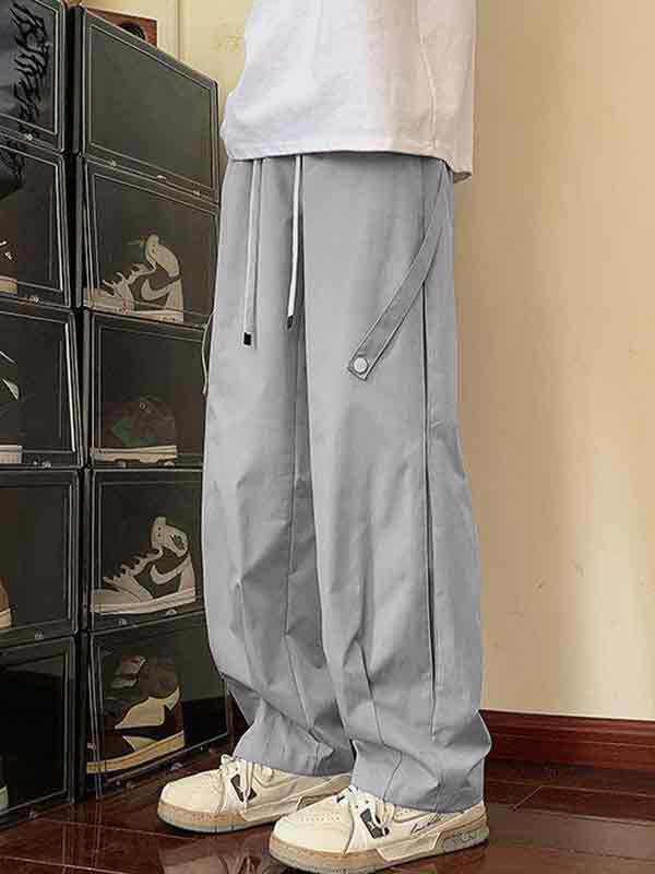 Pantalones de pierna ancha con pies atados y empalme sólido para hombre