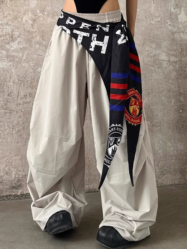 Pantalones anchos con cintura doble y diseño de patchwork y rayas en la cabeza