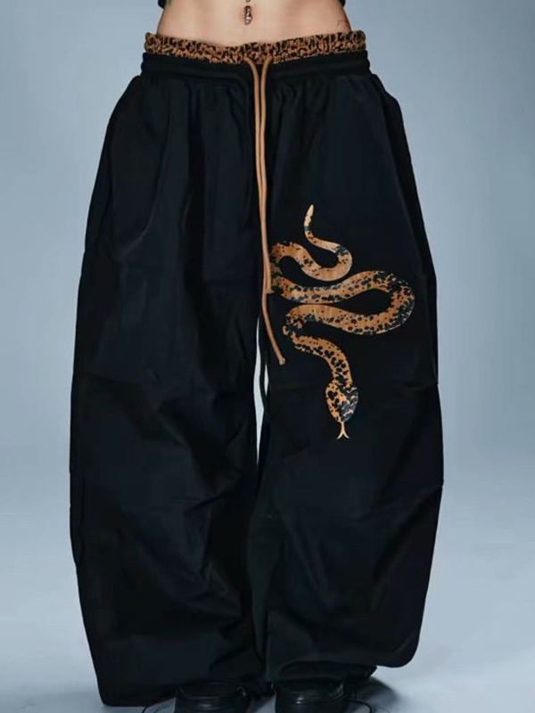 Pantalones anchos con cordón y múltiples bolsillos con estampado de letras para hombre