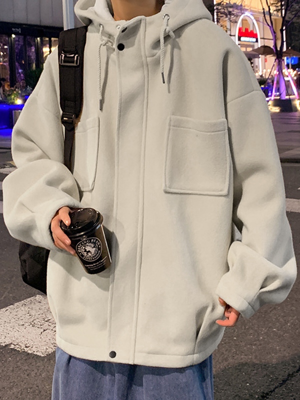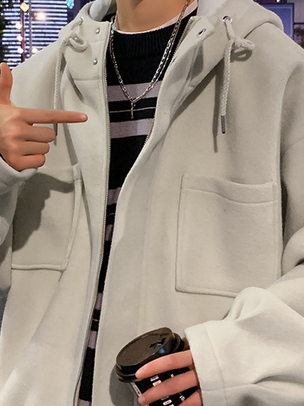 Sé el primero en valorar “Chaqueta de lana corta con cremallera y capucha unicolor para hombre”