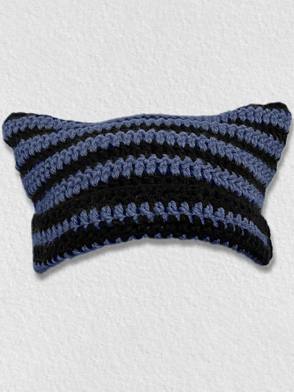Sé el primero en valorar “Gorro tejido a rayas con detalle de cuerno hecho a mano”
