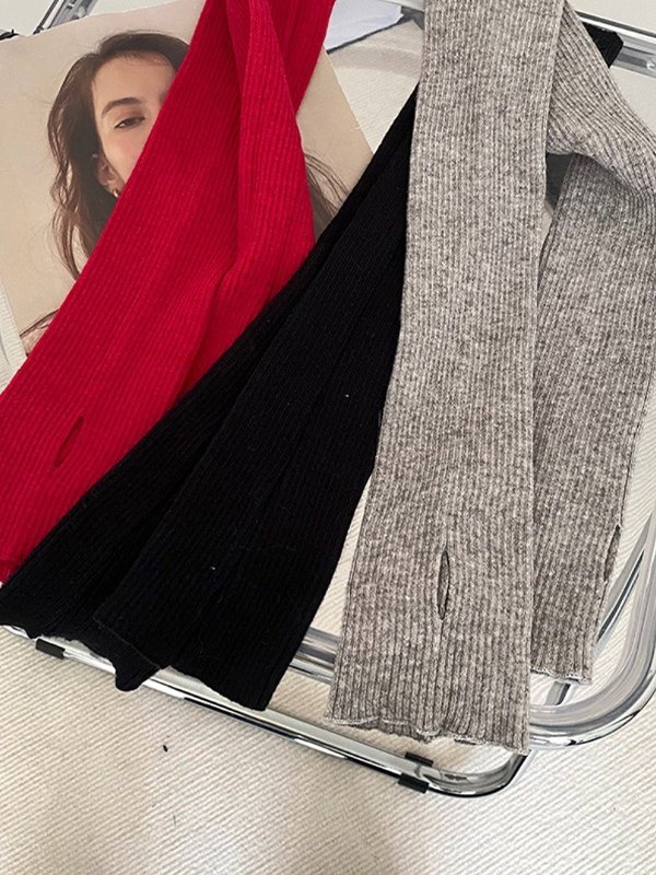 Guantes calentadores de brazo con orificio para el pulgar de punto acanalado