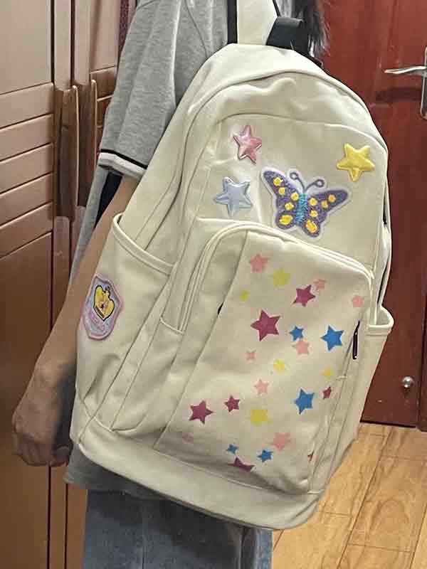 Mochila impermeable de gran capacidad con decoración de estrellas coloridas