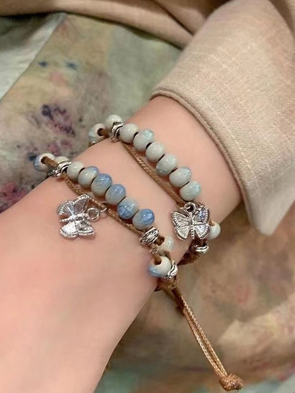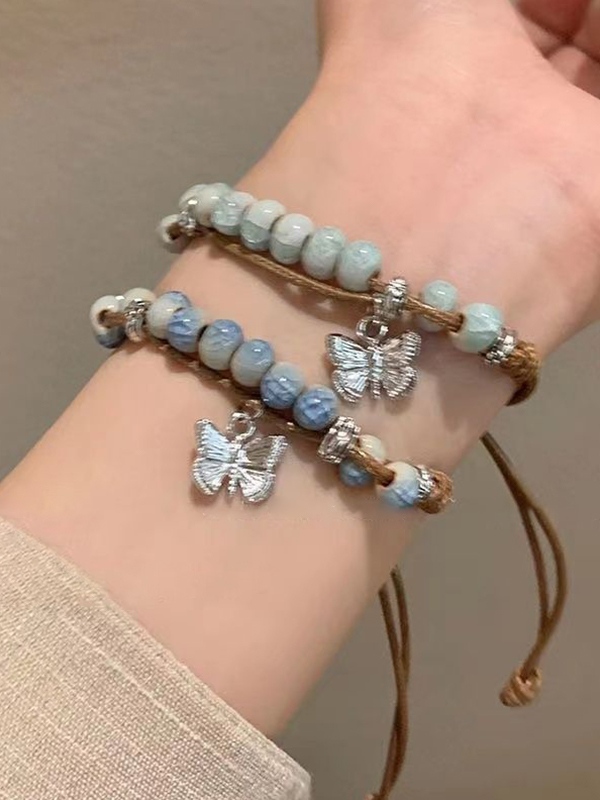 Pulsera trenzada con cuentas de cerámica de mariposa vintage