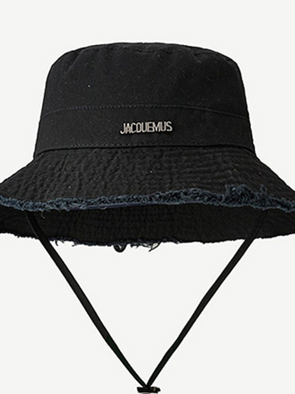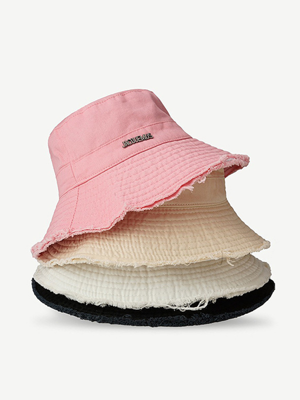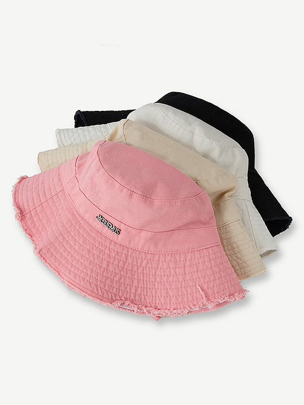 Sombrero de pescador ajustable con ribete crudo y decoración de letras de metal sólido
